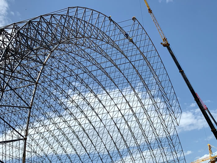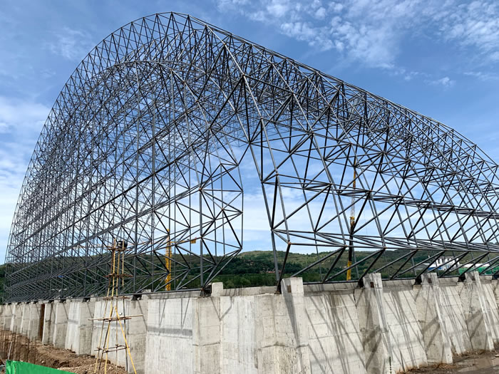 (2)网架加工前应对现场尺寸进行复测,确认无误后方可进行加工、安装;网架制作、运输、安装应遵守《空间网格结构技术规程》JGJ7-2010、《钢网架海门螺栓球节点》JG/T 10-2009、《钢网架海门螺栓球节点用高强度螺栓》 GB/T 16939-2016、《钢结构海门工程海门施工规范》 GB50755-2012、《钢结构海门工程施工质量验收标准》 GB50205-2020。